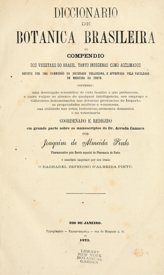 Diccionario de Botanica Brasileira, ou Compendio dos Vegetaes do Brasil, tanto Indigenas como Acclimados: Coordenado e Redigido em Grande Parte sobre os Manuscriptos do Dr. Arruda Câmara