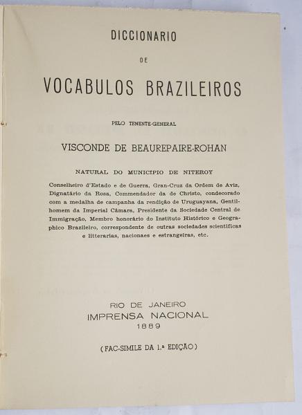 Diccionario Brazileiro da Lingua Portugueza: Elucidario Etymologico-Critico das Palavras e Phrases que, Originarias do Brazil, ou aqui Populares, se não Encontrão nos Diccionarios da Lingua Portugueza...