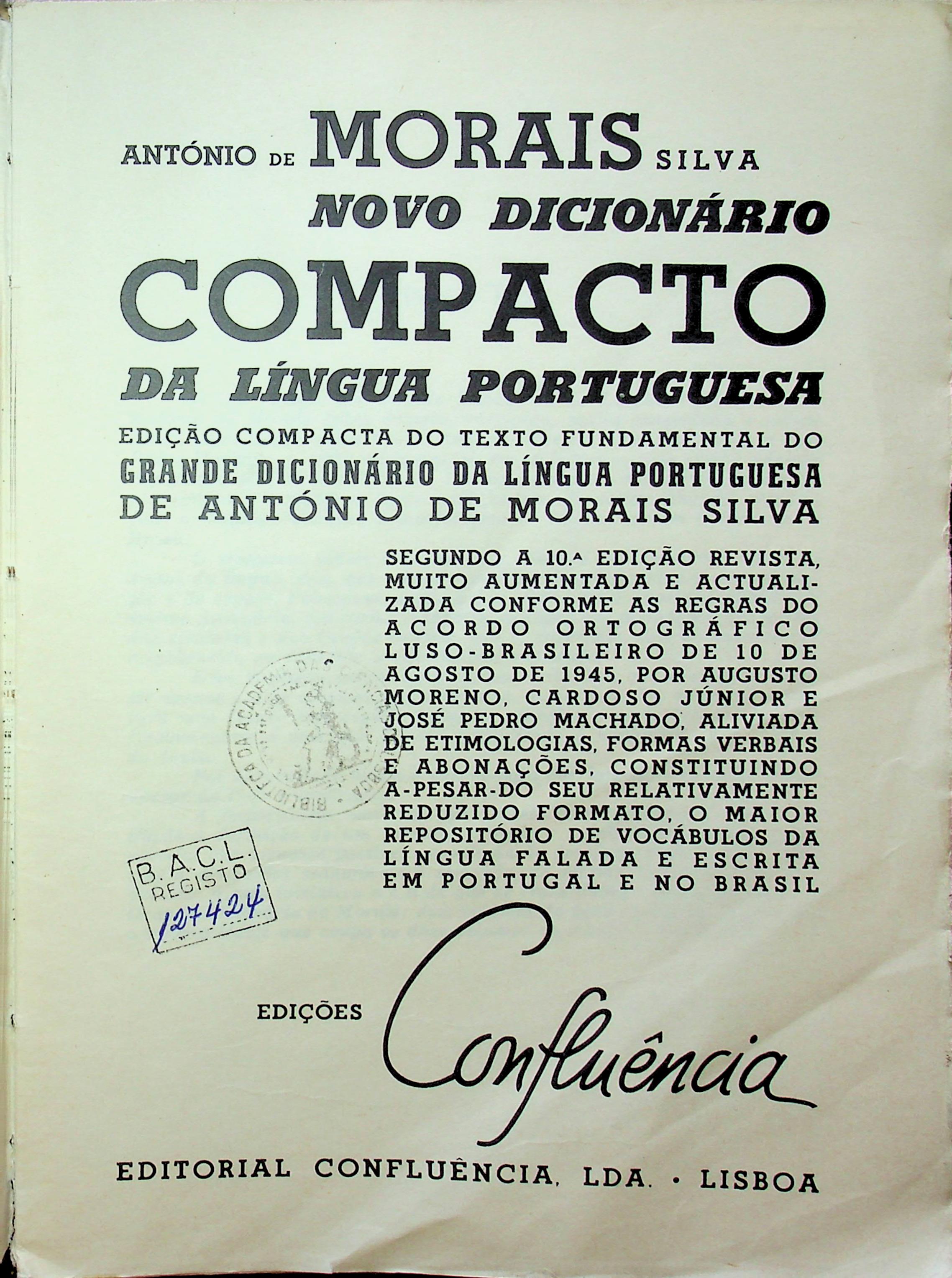 7ª edição melhorada, e muito acrescentada com grande número de termos novos usados no Brasil e no português da Índia. Contém: Tomo I- A-E; Tomo II- F-Z