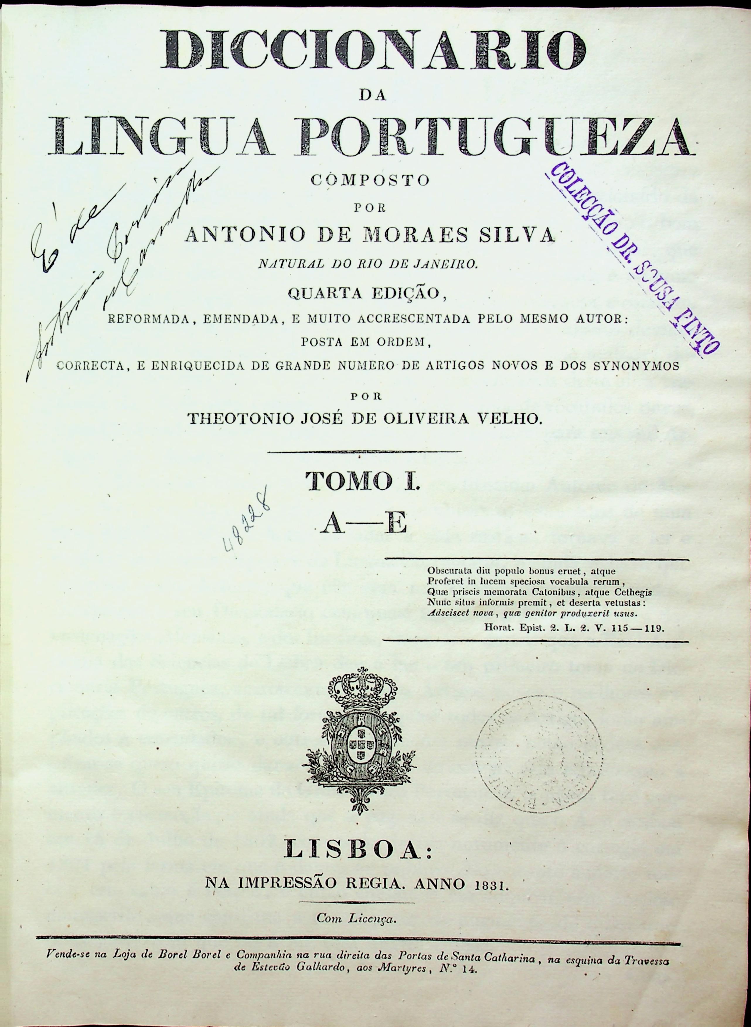 Edição comemorativa do Primeiro Centenário da Independência do Brasil. - Fac-símile da Segunda edição de 1813. - V. 1: A-E. - XX, XLVIII, 806, [2] p. - V. 2: F-Z. - [2], 872 p.
