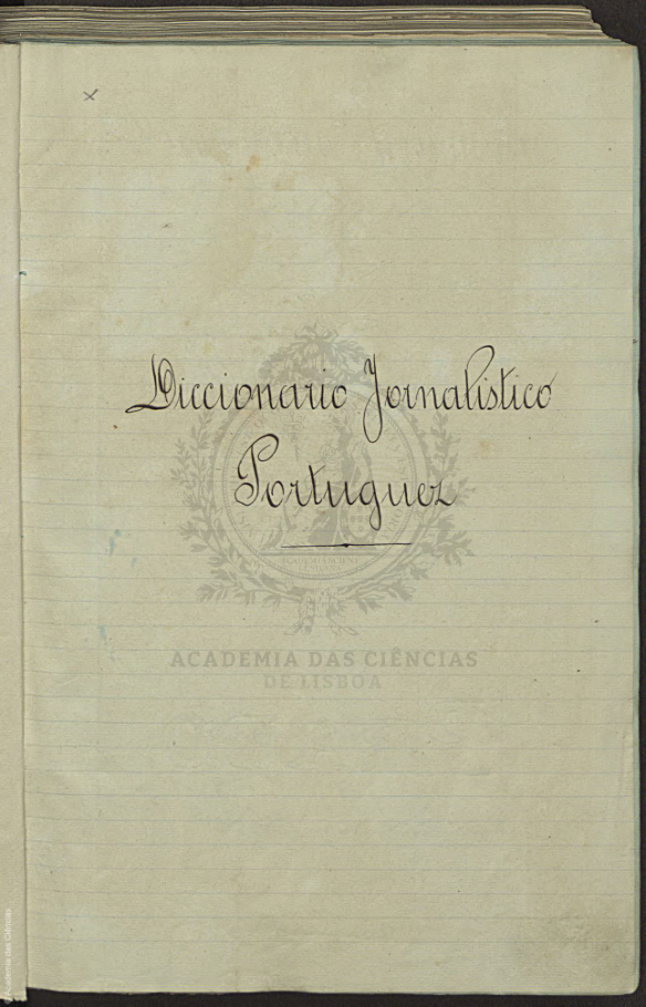 Original. Este dicionário, que ficou várias décadas por publicar, abrange sete épocas de jornalismo, de 1625 a 1889, ano da morte de D. Luís I. As notas de Silva Pereira estão colocadas pela ordem alfabética do título de cada jornal. O conjunto da obra foi comprado em 1914 pela Academia das Ciências por 170$000rs., à viúva do autor, D. Maria Francisca de Sá da Silva Pereira, com o compromisso de imediata impressão (cf. Inocêncio, XXII, 493-496). Este dicionário foi publicado em DVD em 2008. Enc. com lombada de percalina e pastas de papel de fantasia. Tomo 1: 1 fl. em branco inum. + 1 fl. de anterrosto inum. + 637 fls. de texto nums. a numerador, incluindo o rosto + 1 fl. em branco inum. Abrange as quatro primeiras épocas, de 1625 a 1833. Tomo 2: 573 fls. de texto nums. a numerador, de 638 a 1210 + 2 fls. em branco inums. 5ª época (1833-1851), letras A a L. Tomo 3: 354 fls. de texto nums. a numerador, de 1211 a 1564 + 4 fls. em branco inums. 5ª época (1833-1851), letras M a Z. Tomo 4: 582 fls. de texto nums. a numerador, de 1565 a 2147, estando o último em branco + 1 fl. em branco inum. 6ª época (1851-1861), letras A a Z. Tomo 5: 367 fls. de texto nums. a numerador, de 2147 a 2513 + 2 fls. em branco inums. 7ª época (1861-1889), letra A. Tomo 6: 259 fls. de texto nums. a numerador, de 2514 a 2772 + 1 fl. em branco inum. 7ª época (1861-1889), letra B. Tomo 7: 259 fls. de texto nums. a numerador, de 2773 a 3234 + 1 fl. em branco inum. 7ª época (1861-1889), letra C. Tomo 8: 609 fls. de texto nums. a numerador, de 3235 a 3843 + 2 fls. em branco inums. 7ª época (1861-1889), letras D a F. Tomo 9: 428 fls. de texto nums. a numerador, de 3844 a 4271 + 2 fls. em branco inums. 7ª época (1861-1889), letras G a I. Tomo 10: 582 fls. de texto nums. a numerador, de 4272 a 4853 + 2 fls. em branco inums. 7ª época (1861-1889), letras J a M. Tomo 11: 313 fls. de texto nums. a numerador, de 4854 a 5366 + 2 fls. em branco inums. 7ª época (1861-1889), letras N a P. Tomo 12: 451 fls. de texto nums. a numerador, de 5367 a 5817 + 2 fls. em branco inums. 7ª época (1861-1889), letras O a S. Tomo 13: 451 fls. de texto nums. a numerador, de 5818 a 6135 + 2 fls. em branco inums. 7ª época (1861-1889), letras T a Z