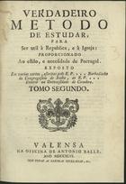 Verdadeiro metodo de estudar: para ser util à Republica, e à Igreja: proporcionado ao estilo, e necesidade de Portugal