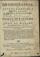 Orthographia ou arte de escrever e pronunciar com acerto a lingua portugueza para uso do excellentissimo Duque de Lafoens